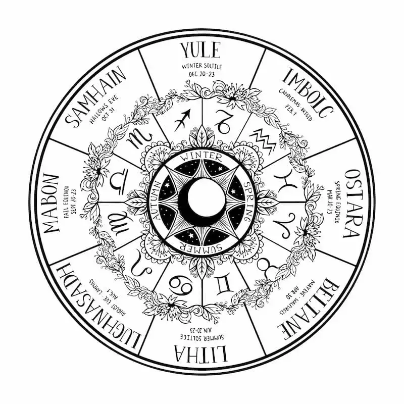 Les adeptes de ce mouvement, les wiccanes, vénèrent des divinités telles que Gaïa, la déesse de la terre, et Hécate, la déesse de la lune et de la magie. En se décrivant comme sorcières, ils pratiquent diverses formes de magie, notamment le druidisme, le chamanisme et les rites mystérieux. Cela inclut l'utilisation de sorts, d'incantations, de spiritisme, d'astrologie, de divination et d'autres pratiques ésotériques, détaillées sur Witchiz. Tous les rituels sont accompagnés d'objets magiques et symboliques tels que l'encens, les cristaux énergétiques, les bougies et le célèbre grimoire de magie. Les wiccans suivent le calendrier dianique, basé sur le cycle solaire et lunaire, qui divise l'année en sabbats majeurs (Samhain, Imbolc, Beltane et Lughnasadh) et en sabbats mineurs correspondant aux solstices et aux équinoxes (Yule, Ostara, Litha et Mabon).